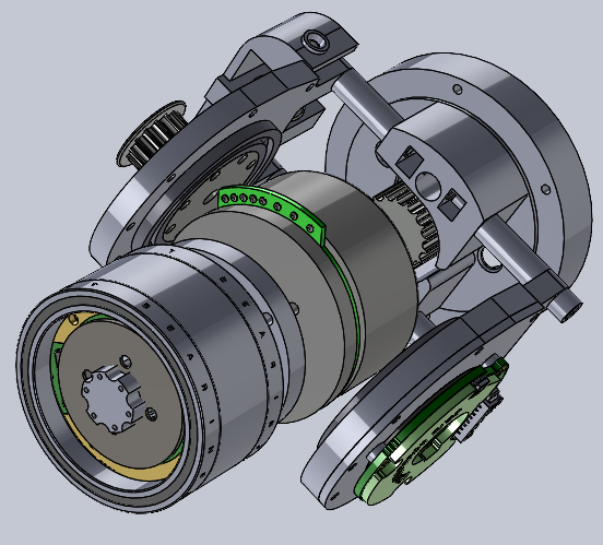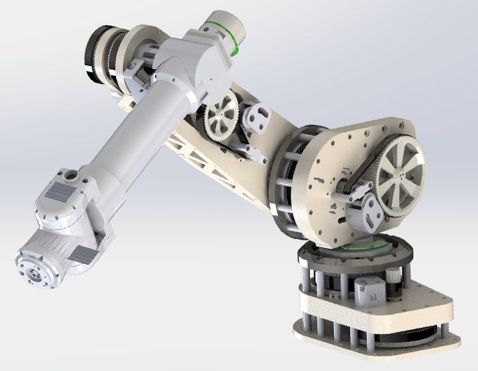 Die Robotergelenke (Reichweite: 0,6 m, Traglast: 3 kg) werden durch BLDC-Motoren servogesteuert und sind mit absoluten Encodern ausgestattet. Die ersten vier Achsen sind riemengetrieben (belt drive), während die Achsen 5 und 6 Wellengetriebe (wave gears/harmonic drives) nutzen (siehe Bild der 6. Achse).