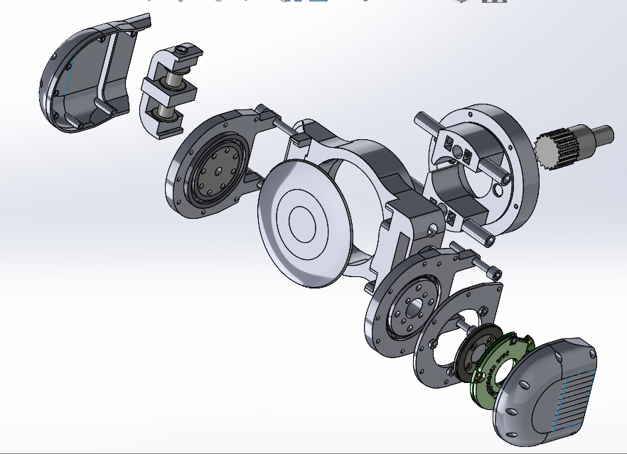 Lessons Learned: Alles in einer einzigen Baugruppe zu zeichnen war keine gute Lösung, da die hohe Teileanzahl zu langen Ladezeiten führt. Wenn man Teile modelliert hat, sollte man sie jeweils in eine neue Baugruppe verschieben, die das 3D-Modell der jeweiligen Achse enthält. Anfangs kann auch Fusion 360 statt SolidWorks verwendet werden, da es eine modernere und grafisch übersichtlichere Anwendung ist